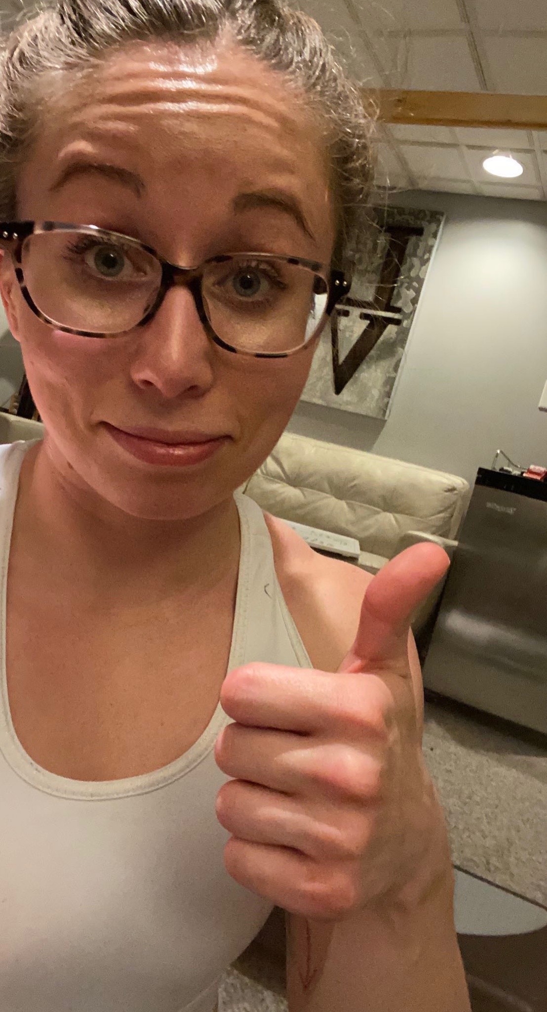 Half of the hip thrusters with the 15# DB, half unweighted because I do have to run tomorrow LOL.