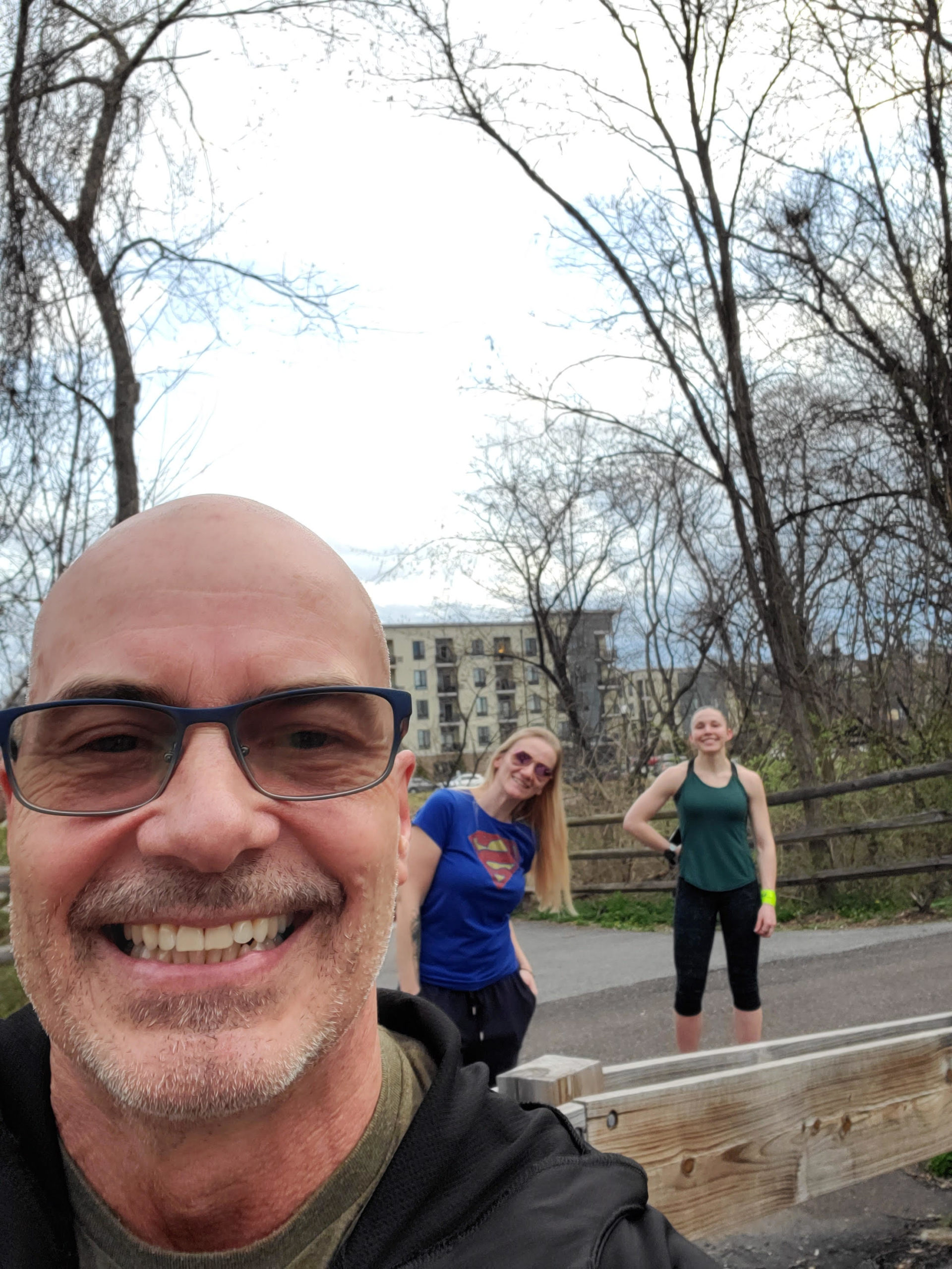 Warm up was another trek through the woods with the kids!